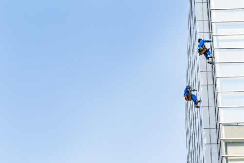 ビルメンテナンス事業では、定期的な点検のほかに石材メンテナンスやリメイク、高所ガラス清掃などを承っております。